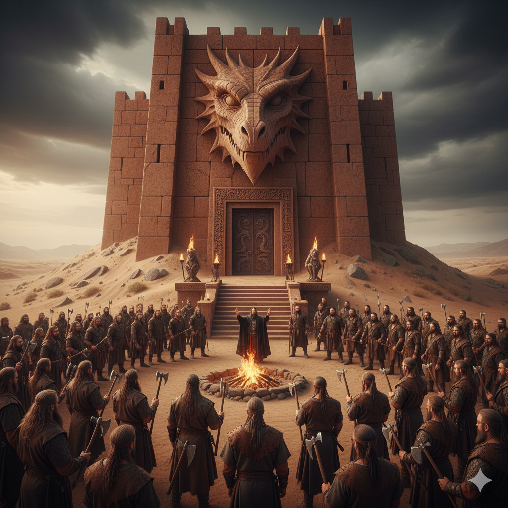 Τον έδεσαν με ατσάλινες αλυσίδες, και τον οδήγησαν στην έκταση που είχε μετατραπεί σε Όκεντραγκ, την Έρημο των Δράκων. Ένας τόπος όπου κάποτε υπήρχαν λίμνες και δάση, μα τώρα απλωνόταν μόνο άμμος και θάνατος. Οι ιερείς ύψωσαν βωμό και ετοιμάστηκαν να θυσιάσουν τον πρώην προστάτη τους, πιστεύοντας πως έτσι θα φέρουν πίσω τη βροχή.