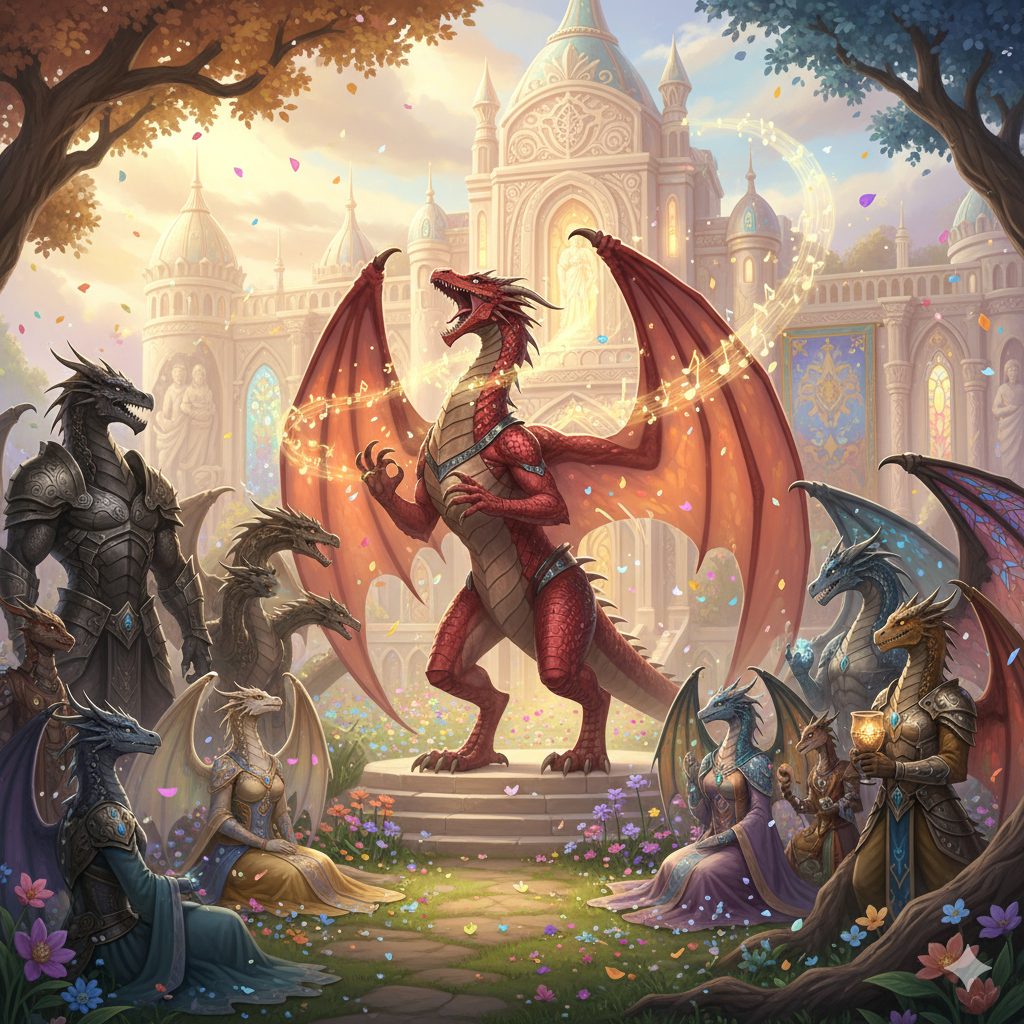 Αποκαλείται Δράκαινα της Τέχνης, Αρχόντισσα της Μουσικής, Βάρδος των Δρακοθεών, Σιωπηλή Δρακοθεά.