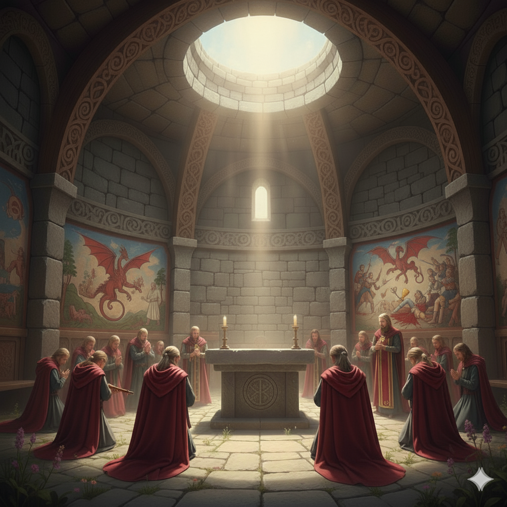 Οι ναοί είναι πέτρινοι. Μέσα τους, στο φως του ήλιου, επικρατεί σιωπή, ευλάβεια και κατάνυξη. Μα με τη δύση του, η ατμόσφαιρα γεμίζει χαρά και τέχνη. Παντού ηχούν όργανα και τραγούδια, όχι για να καλέσουν τη Δρακοθεά, αλλά για να της θυμίσουν πως δεν την ξέχασαν.